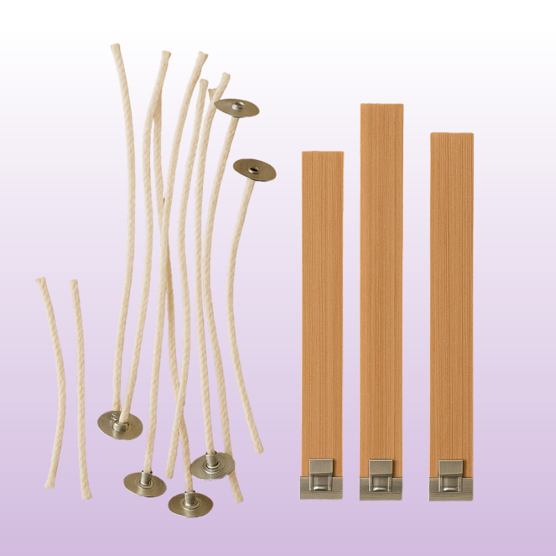 Des mèches en conton ou en bois, sélectionnées pour une combustion propre et maîtrisée.